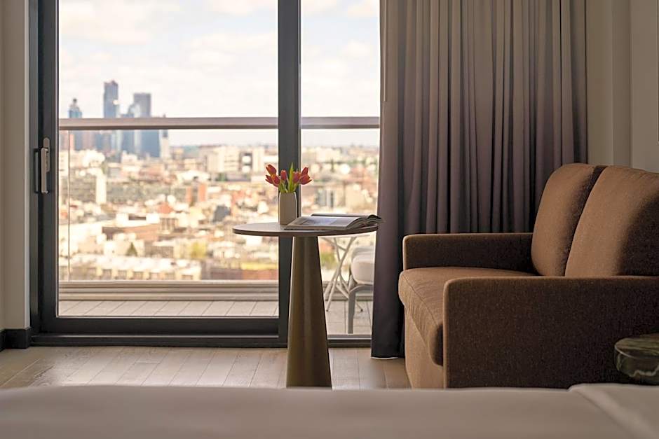 Gotham Corner Suites features a separate bedroom, a living room and a balcony. The bathroom features a rain shower.